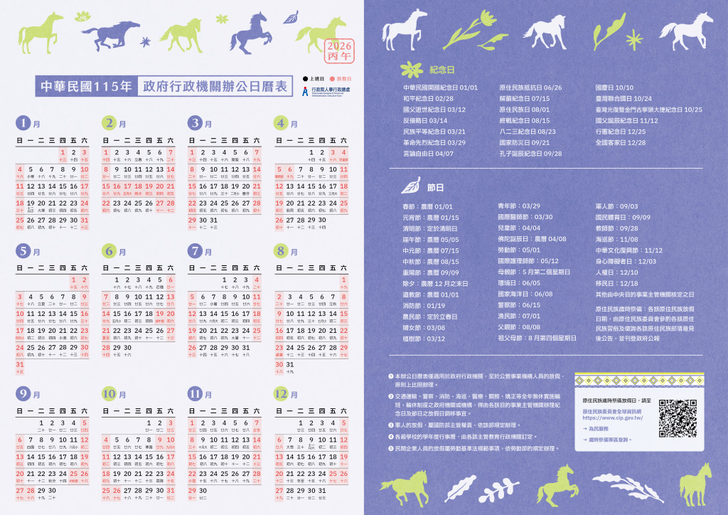 「中華民國115年政府行政機關辦公日曆表」