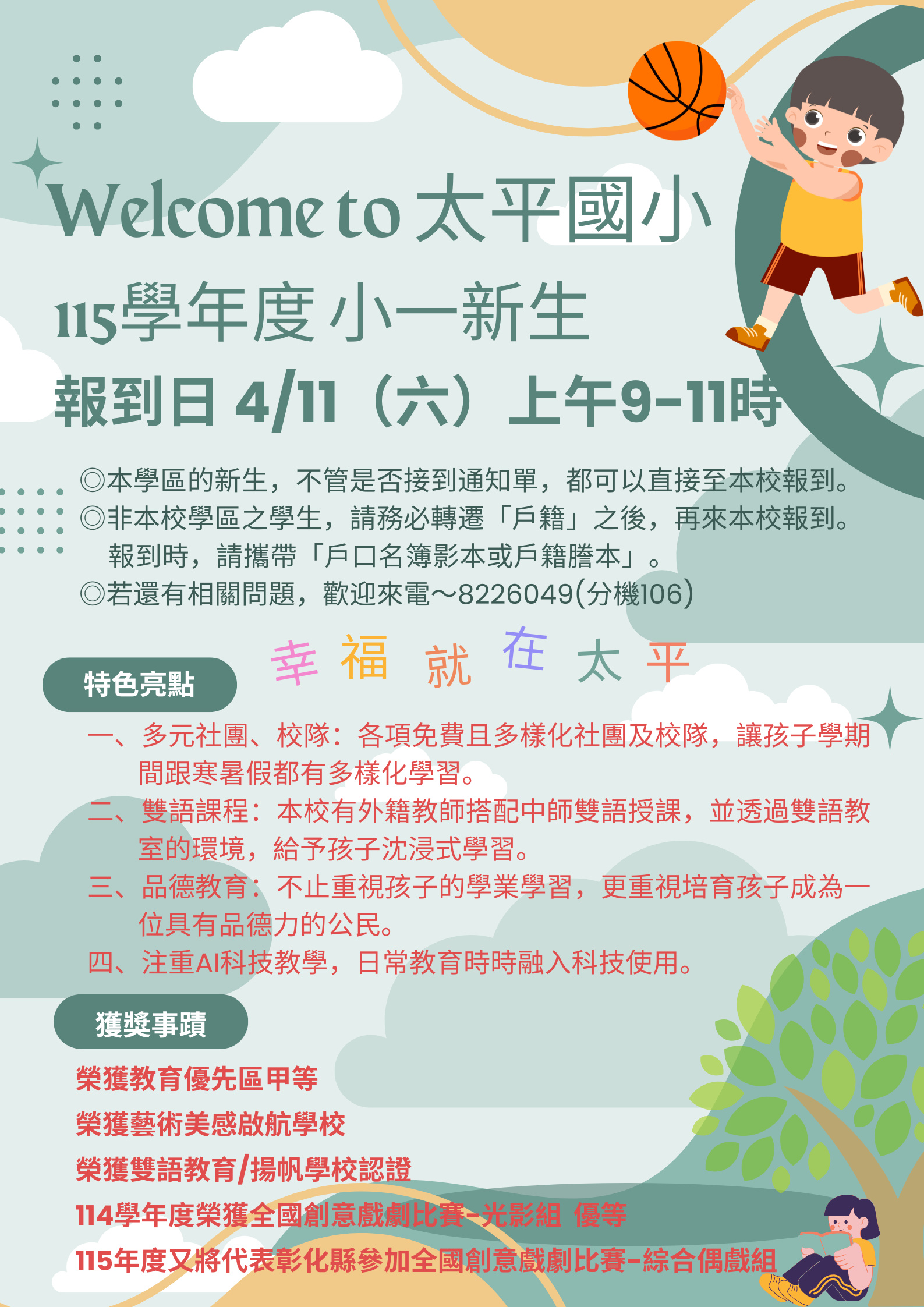 太平國小「115學年度 小一新生」報到